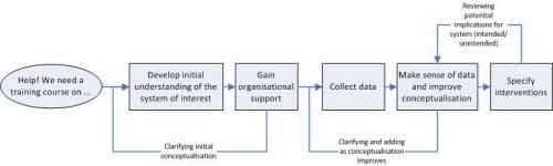 In certain respects using systems thinking approaches to carry out a training needs analysis is not much different to doing it using more conventional methodologies. The process flow here shows how this typically works.